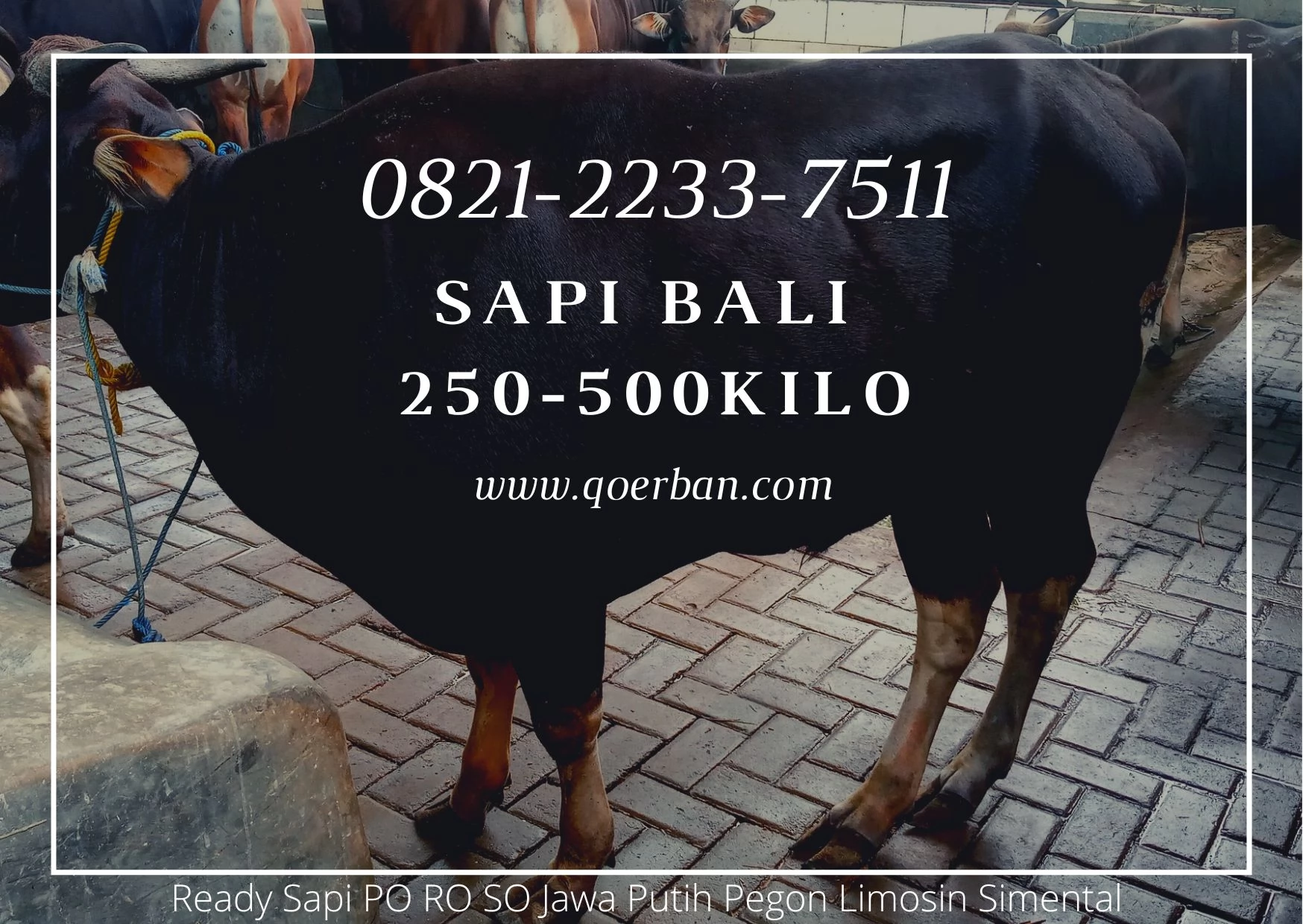 Selamat datang di tempat terbaik untuk memilih sapi Qurban yang berkualitas tinggi dan siap kurban pada tahun 2024! Kami menyediakan sapi Qurban jenis Bali dan Kupang dengan berat hidup antara 200 hingga 500 kilogram. Dengan bobot karkas yang tinggi, daging merah merona, dan tulangan kecil, sapi-sa